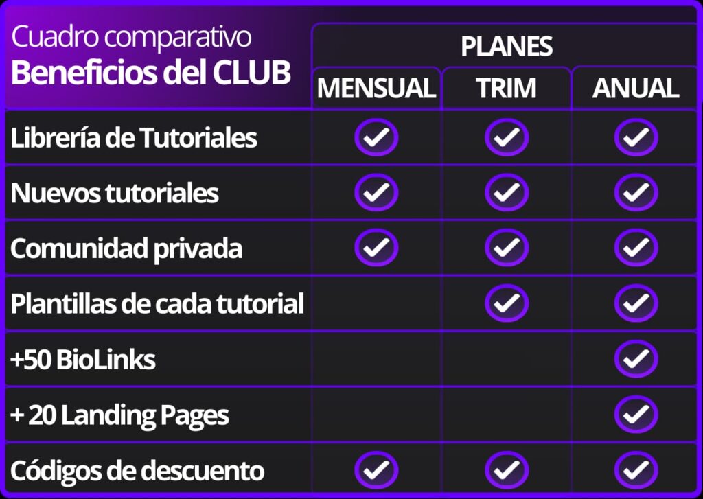 ¡Elige tu plan!, he diseñado un cuadro comparativo para que puedas visualizar los beneficios y diferencias de cada plan